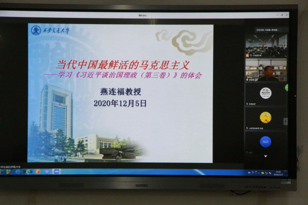 12月5日下午,应学院邀请,西安交通大学必赢565net官网燕连福教授在线作了题为“《习近平谈治国理政(第三卷)》解读”的报告。报告会由必赢565net官网副院长马俊峰教授主持,学院教师、本硕博学生聆听了报告。本场报告也是研究生学术月活动之一。