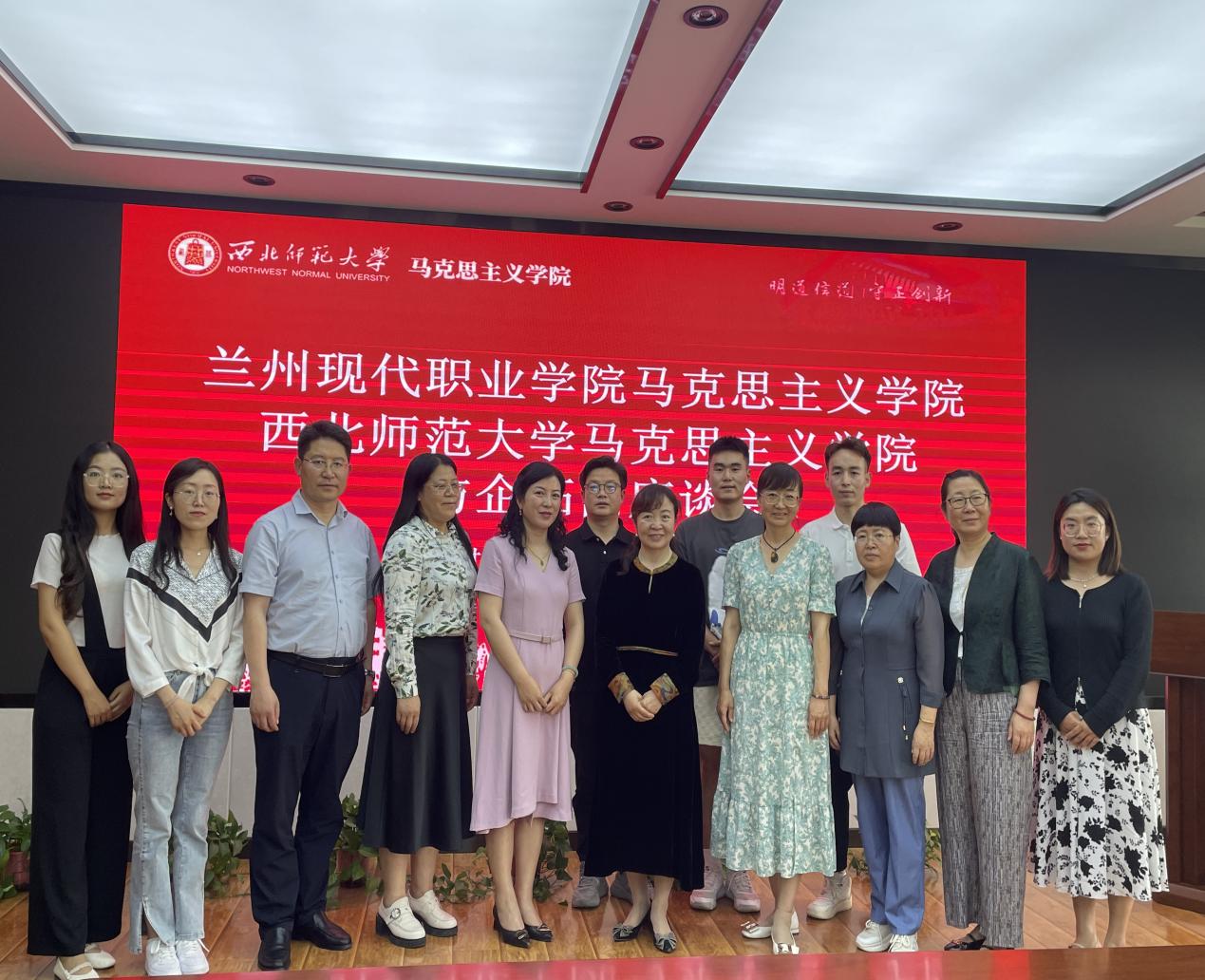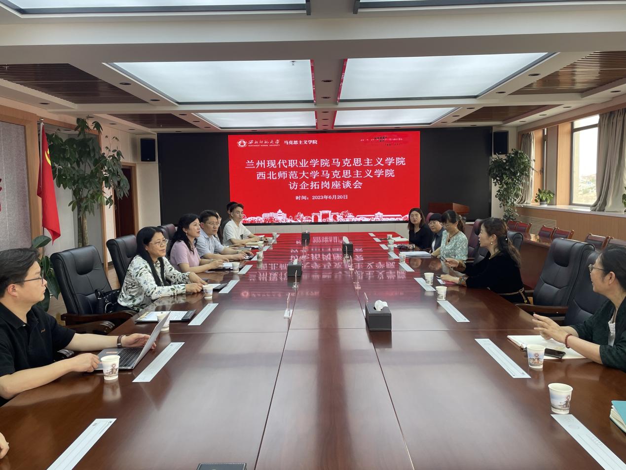 为积极践行《甘肃省全面推进“大思政课”建设工程实施方案》,全面落实省教育厅《关于进一步做好2023届高校毕业生就业工作的紧急通知》,将“三抓三促”精神融入到学院建设和毕业生就业工作之中,持续探索思政课教学改革创新,突出育人工作实效,优化人才培养方案,切实推动必赢官网“访企拓岗促就业行动”进一步走深、走实、走细。6月20日下午,必赢565net官网党委副书记王宏渊老师、魏彩苹教授、周方副教授、青年教师李萍萍及研究生代表一行9人赶赴兰州现代职业技术学院开展访企拓岗促就业行动,与兰州现代职业技术学院领导和必赢565net官网教师进行座谈交流。