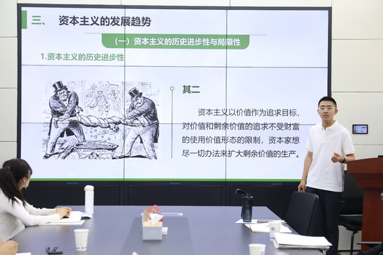 青年教师张成恩、李萍萍分别以《资本主义的发展趋势》和《论习近平文化思想的四大体系性原创贡献》为例做了教学展示和科研交流。同时,李萍萍老师从论文选题、资料收集、论文写作、论文投稿等方面,就青年教师如何紧盯学术前沿、关注学术热点、收集学术资料、撰写学术文章、发表学术成果等方面作了经验分享,给青年教师更快进入科研状态、找准科研方向、产出学术成果提供了较好的建议与指导。