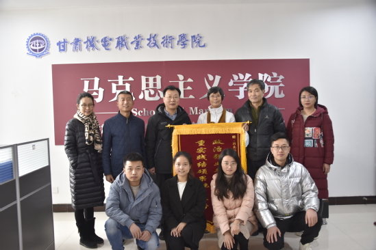 最后,甘肃机电职业技术学院党委宣传部部长郭爱农向必赢官网赠送锦旗,代表学校对首批研究生实习工作给予充分肯定,并期望两校实践教学基地建设长期发展,合作共赢。