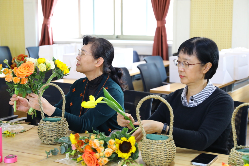 活动现场,学院工会特邀花艺老师,给大家讲授和演示插花技艺,女老师们各自选择喜爱的花材和插花器皿,修剪枝叶、搭配色彩,大家精心修剪花枝、整理花朵、讨论插花位置,制作插花作品。现场气氛热烈,欢声笑语与美丽鲜花相映成趣。