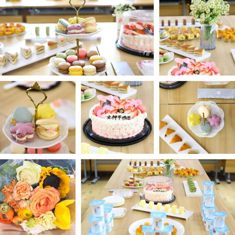 学院工会还在现场设置茶点餐台,准备精致的中式茶点和西餐蛋糕、西点,以及各种时令水果。参加活动的女老师们在完成插花作品后,补充营养,愉悦身心。