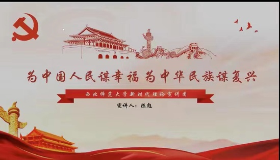 宣讲团成员陈彪以《为中国人民谋幸福,为中华人民谋复兴》为题,声情并茂地讲述了从新民主主义革命时期、社会主义革命和建设时期、改革开放和社会主义现代化建设新时期,到中国特色社会主义进入新时代一百年以来矢志不渝、奋斗不息的历史。“为有牺牲多壮志,敢教日月换新天”,正是这逢山开路、遇水架桥的大无畏气概,这“越是艰难越向前”的刚健勇毅,让我们伟大的党踏过冬雪,走过春光,实现了国家的宏伟愿景和人民的幸福期望。
