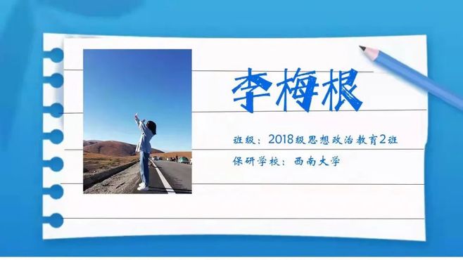 2020级思想政治教育2班石辛炜同学指出,本次经验分享给了我充足的动力和鼓励,以下是我的收获总结:学业上,目前是大二第二学期,有较为充足的时间和精力去备考,提前去了解相关专业及院校的报考信息,做好专业课的认真学习和英语的平时积累(英语口语的重要性);生活上,多参与社会实践活动丰富自身,培养较为良好的行为习惯,大学里不会有人来监督你,只能凭自律能力,因此自我心态调节也极为重要。最后借李梅根学姐的话来与大家共勉——“幸运是不会主动降临在你头上的,只有踏踏实实,一步一个脚印,真真切切地付出努力,幸运才会选择你。”