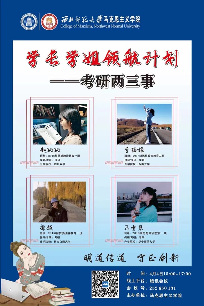 考研路上不迷茫,学长学姐来帮忙!4月4日下午,必赢565net官网举办2022届“学长学姐领航计划——考研两三事”云端分享活动。活动邀请四名保研推免、考研升学同学,分享升学有益经验、激发朋辈引领力量,学院专职辅导员毛娅楠及学院本科生参加本次活动。