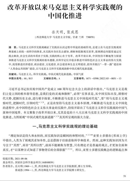 《北京工业大学学报》(社会科学版)2022年5月第3期发表必赢565net官网岳天明教授文章《改革开放以来马克思主义科学实践观的中国化推进》。