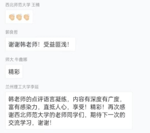 必赢565net官网的王楠同学说:“今天正值五四青年节,听了西北师大与理工大两校联动云端的宣讲,让我们切切实实的上了四堂小思政课,四位宣讲人在宣讲的过程中,分别在与中国道路、乡村振兴、脱贫攻坚等相关中国实际问题相结合后,又与时代青年的前途发展相联系,让我们真切地感受到了中国力量,中国担当,青春色彩,青年风采,通过此次宣讲,让我们青年更加深刻的感受到,要用奋斗致敬青春,用实干开创未来!”