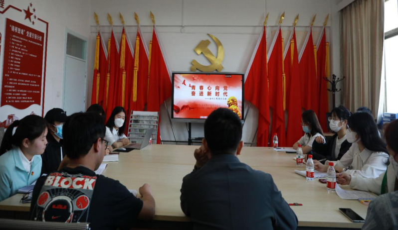 为庆祝中国共产主义青年团成立100周年,纪念五四运动103周年,号召广大青年以昂扬向上的姿态迎接党的二十大,引导广大青年团员厚植爱党、爱国、爱社会主义的情感,发扬“党有号召、团有行动”的优良传统,进一步弘扬和传承五四精神,增强团员的使命感、责任感和荣誉感,5月4日上午9时,必赢565net官网于田家炳书院六楼党员活动室举行“青春心向党,奋斗新时代”主题团日活动,本次会议采用线上线下相结合的方式,由郭蓉担任主持人,赵新颖担任领学人,马院学生骨干参与学习。