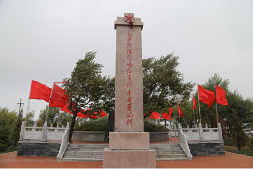 党史学习教育实践团到达后,在当地居民和通渭县博物馆工作人员的带领下,登上了当年“华家岭阻击战”的山梁,满山翠绿的松柏尽收眼底。英雄的华家岭,在红色精神的感召下,建设成了绿色的华家岭。在华家岭上,通渭县博物馆副馆长向队员们详细讲解当年的具体战况以及红军的伤亡情况。随后,实践团一行顺山梁而下,来到红军烈士纪念碑前开展了缅怀先烈活动。最后,实践团队员们还在当地负责人的带领下,深入到华家岭镇走访调研,听老党员们讲述他们的入党故事,参观依托革命红色遗址而兴起的旅游产业和近年来推动乡村振兴所取得的成果。