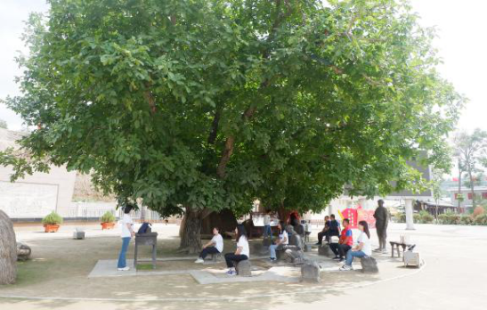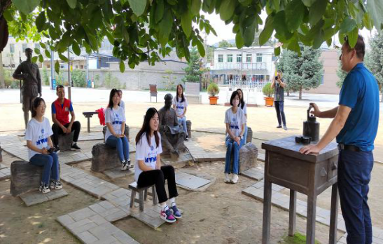 在参观了纪念馆之后,实践团队员们来到了榜罗镇会议旧址核桃树下,倾听通渭县博物馆副馆长讲述当年的故事,大家沉浸在精彩的红色故事中,耳边似乎还回响着当年红军兴高采烈的欢呼声和鼓掌声。站在历经80多年风雨沧桑的核桃树下,树影婆娑,耳畔仿佛还回荡着“到陕甘革命根据地去”的伟大号召。