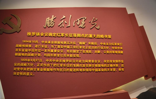 榜罗镇位于甘肃省定西市通渭县榜罗镇。甘肃通渭县是红军长征过境地域最广、活动时间较长、过境部队最多的地区之一,是中国革命走向胜利的决策地,三军胜利会师前的活动地,实现北上抗日的转折地。1935年9月27日,毛泽东、张闻天、周恩来、博古、王稼祥在榜罗镇中心学校校长办公室召开了中共中央政治局常委会议,史称“榜罗镇会议”。会议讨论研究了当时的形势和陕北的军事、政治、经济状况,决定改变俄界会议关于首先赤化甘南,在靠近苏联的地方建立根据地,打通国际路线的战略方针,作出把红军长征落脚点放在陕北的重大决策。会议一致同意毛泽东提出的陕甘支队迅速到陕北与红二十五、红二十六军会合,并提出“保卫与扩大陕北苏区”的新的战略方针。榜罗镇会议是党中央在长征途中召开的一次极为重要的会议,它解决了红军长征以来一直未能解决的建立巩固的革命根据地的问题,在中国革命史上具有十分重要和深远的意义。