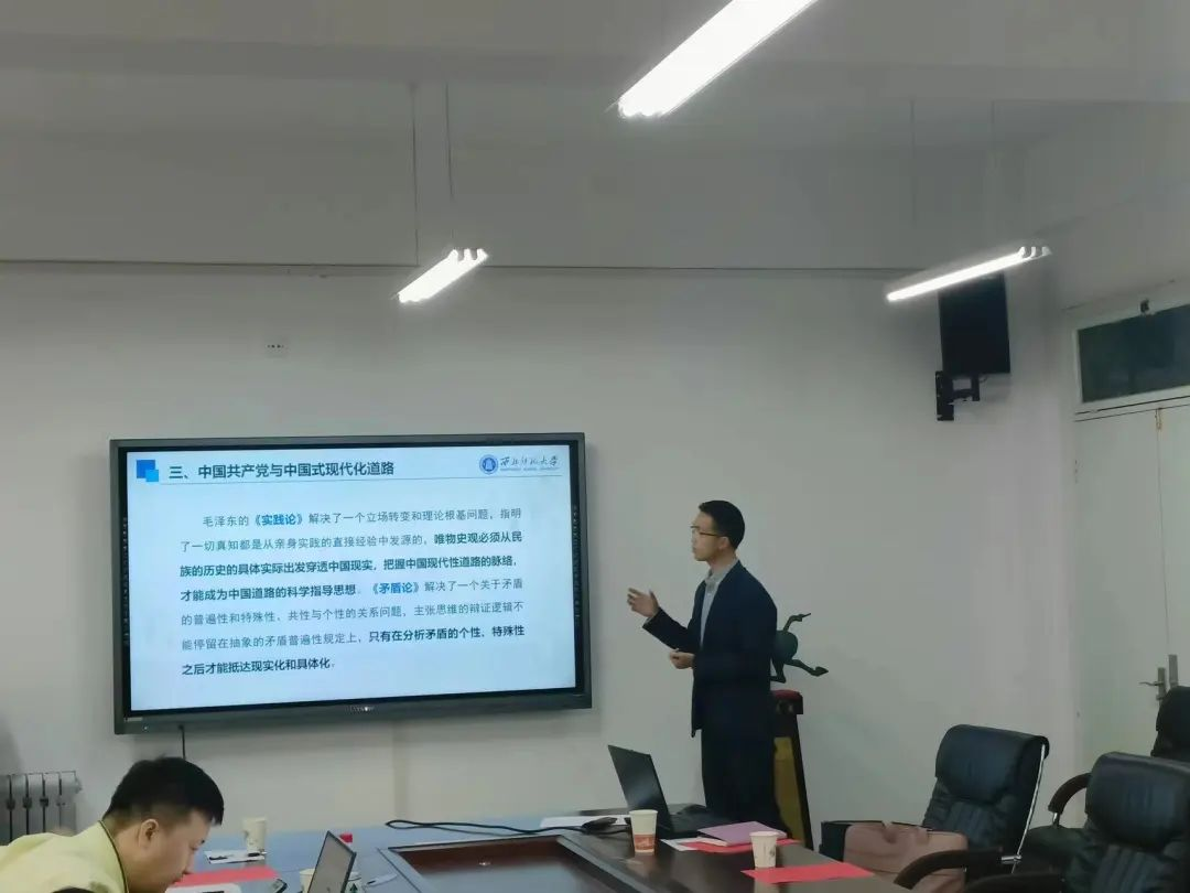 第二个环节为科研探究,由获批2022年甘肃省社科规划项目的两位老师分享他们的申报经验。张钰副教授围绕“深耕经典文本,夯实科研根基”这一主题,分享了他在确定研究方向、明确研究目标、探索研究路径的过程中所总结的宝贵经验。郝相赟博士就他所申报的课题“元宇宙时代意识形态风险防范与化解机制”向大家展开了深入细致的梳理和介绍。