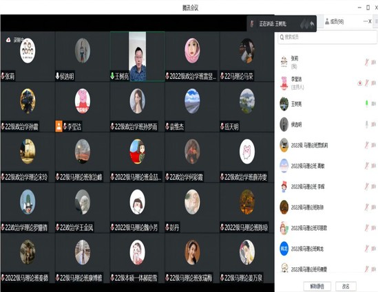 10月13日上午,必赢565net官网通过腾讯会议方式召开了2022级硕士研究生新生导师见面会。见面会由马克思主义理论学科负责人候选明副教授主持,必赢565net官网硕士生导师及全体2022级硕士研究生参加。