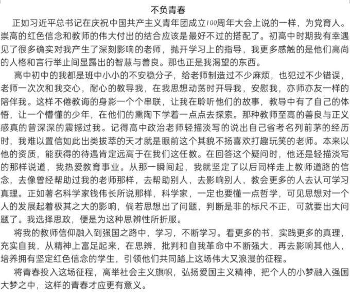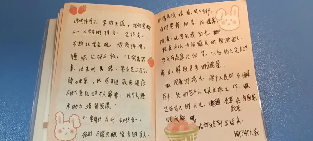 李文芃同学分享到,如今时代的接力棒已传到我们手中,我们更应珍惜韶华,抓住机遇,把热血挥洒在社会主义现代化建设之中。在这可为的时代下施展才华,在时代的熔炉里淬炼成钢,书写绚烂无悔的青春年华,唯有尽心竭力,方不负先辈之托。
