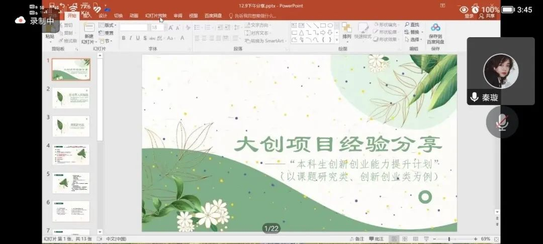 秦璇就科研立项的步骤、选题的一般步骤、怎么做好的创新创业项目等方面做了详细讲解,并鼓励同学们积极参加创新创业。青年学生无论是在创新能力素养还是科学研究方面,都应当充分体现新时代青年的担当。努力将所学理论知识与技能贯彻落实到创新创业的全过程,将理论与实践充分结合,不断提升能力素养、知识文化水平以及统筹工作能力,努力成长为敢担当、能吃苦、不畏难的创新型人才。