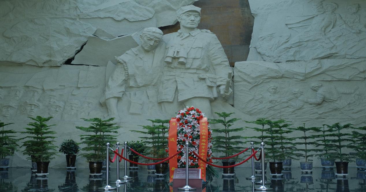 中国工农红军西路军纪念馆,前身为高台烈士陵园,始建于1957年。园内掩埋着红西路军转战河西、血战高台而壮烈牺牲的红五军军长董振堂、政治部主任杨克明等3000多名红西路军革命烈士。在庄严肃穆的革命烈士纪念碑前,全体成员肃立默哀,三鞠躬,并向烈士敬献鲜花,祭奠缅怀革命先烈。