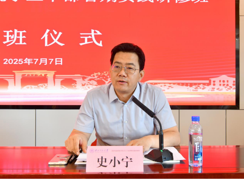 鲁彬作动员讲话,强调了学工干部的重要性,并对各位学工干部提出四点要求:一要潜心钻研,带着问题学;二要知行合一,联系实际悟;三要严守纪律,展现风貌行;四要成果转化,务求时效归。