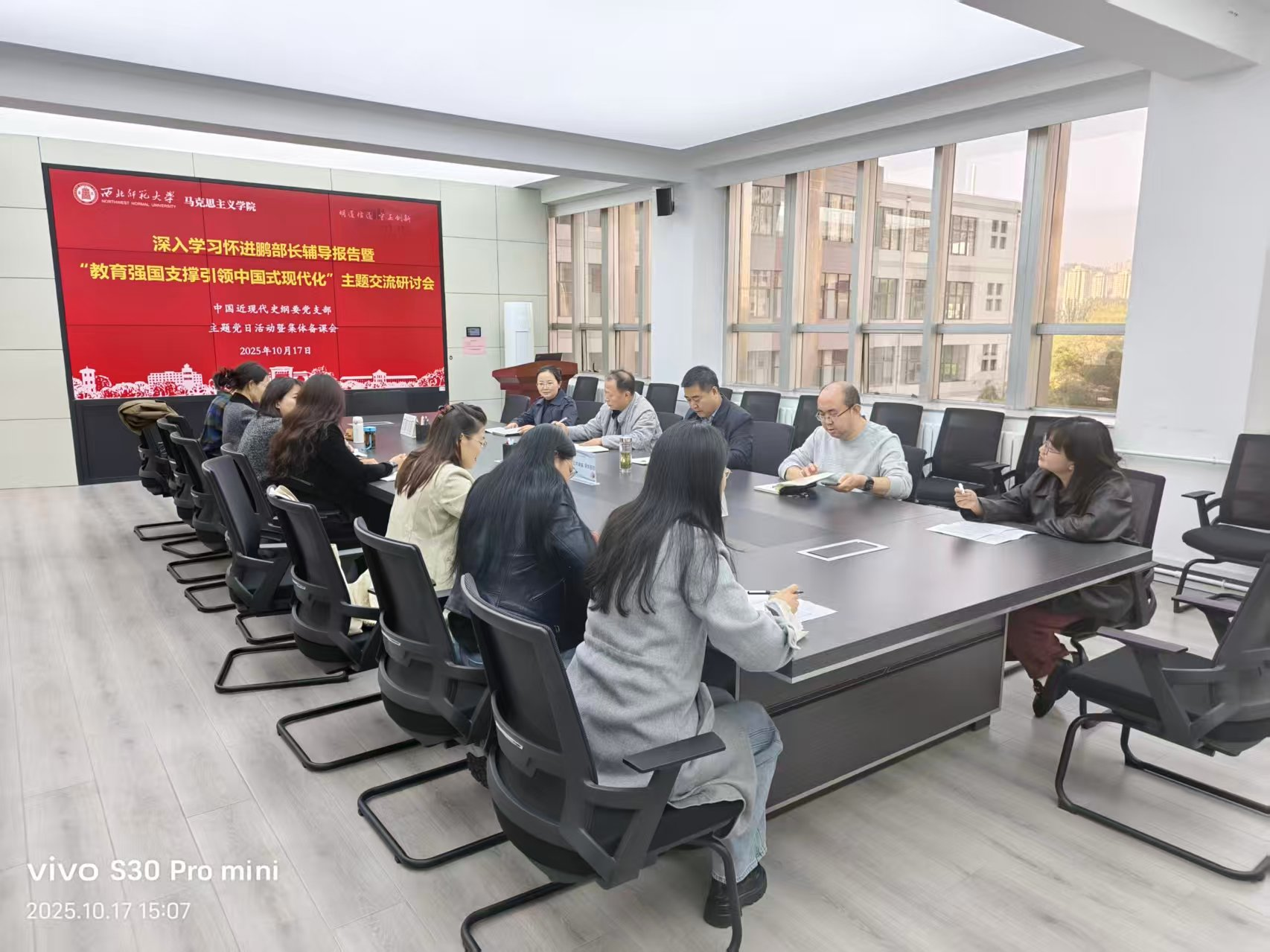 10月17日下午,必赢565net官网中国近现代史纲要所党支部在田家炳教育书院410会议室开展了“教育强国支撑引领中国式现代化”主题研讨交流活动,深入学习教育部部长怀进鹏的辅导报告精神。支部书记闪兰靖教授主持研讨,全体党员参加。
