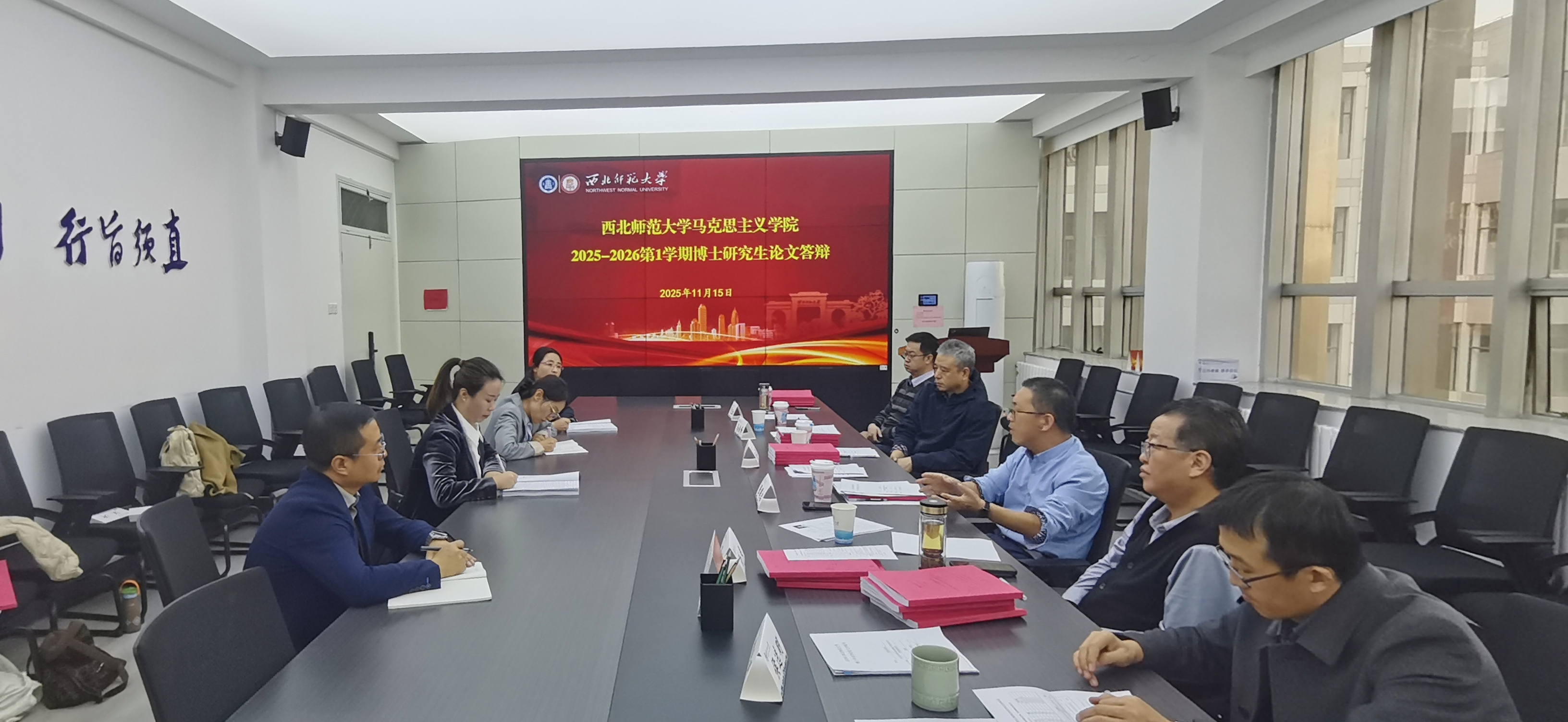 11月15日,必赢565net官网在田家炳教学楼410会议室顺利举行马克思主义基本原理、思想政治教育专业博士研究生学位论文答辩会。本次答辩特邀华南理工大学张国启教授担任答辩主席,甘肃省社会科学研究院陈永胜教授和学院孙健、马俊峰、侯选明、曹亚斌四位教授共同组成答辩委员会,青年教师尚晓丽担任答辩秘书。