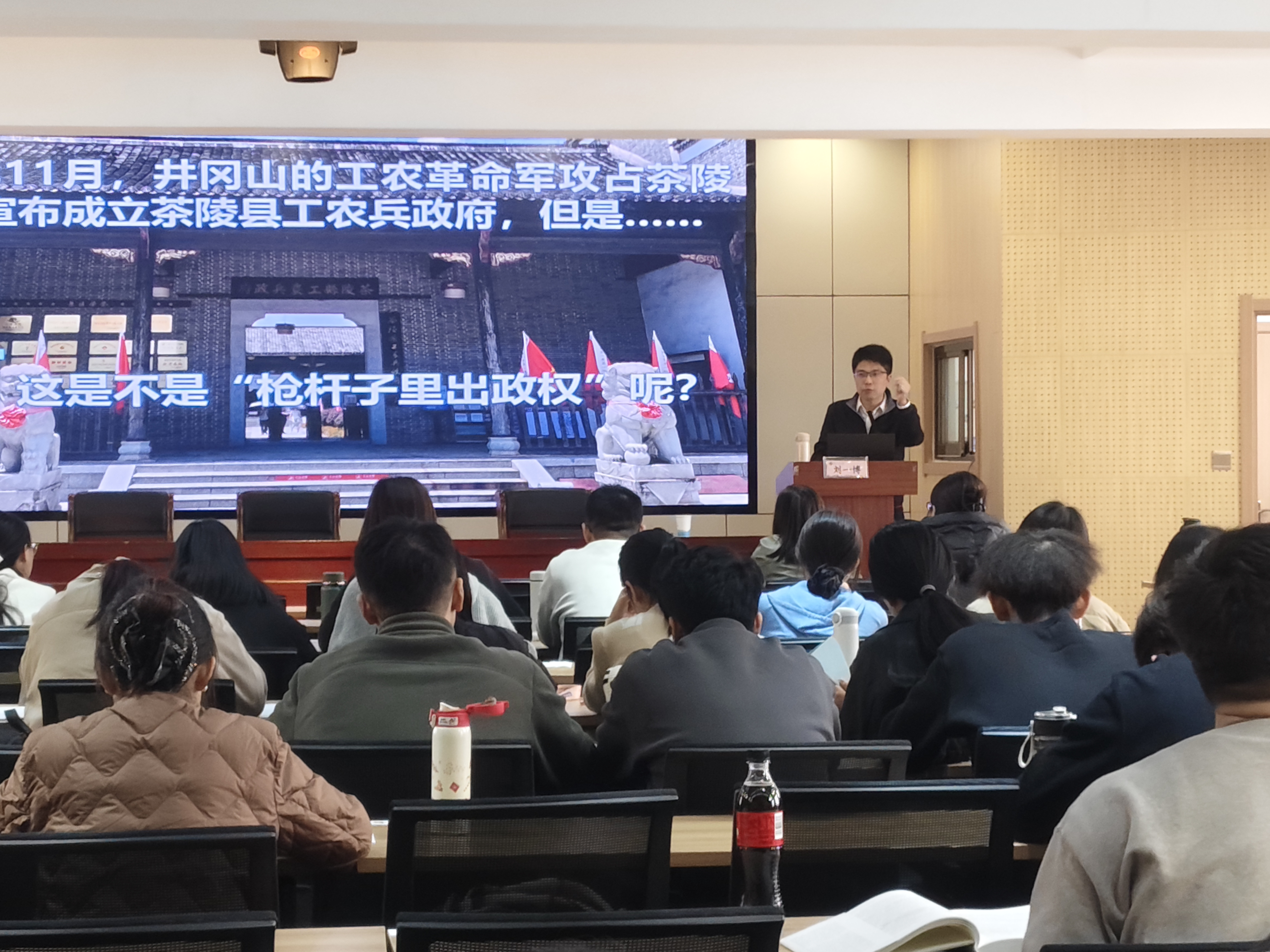 11月21日下午在田家炳教育书院6楼报告厅,南开大学刘一博副教授受邀为学院本、硕学生作了题为“大历史观视域下中国革命新道路的再审视”的专题讲座。中国近现代史纲要所副所长王晓云副教授主持活动。