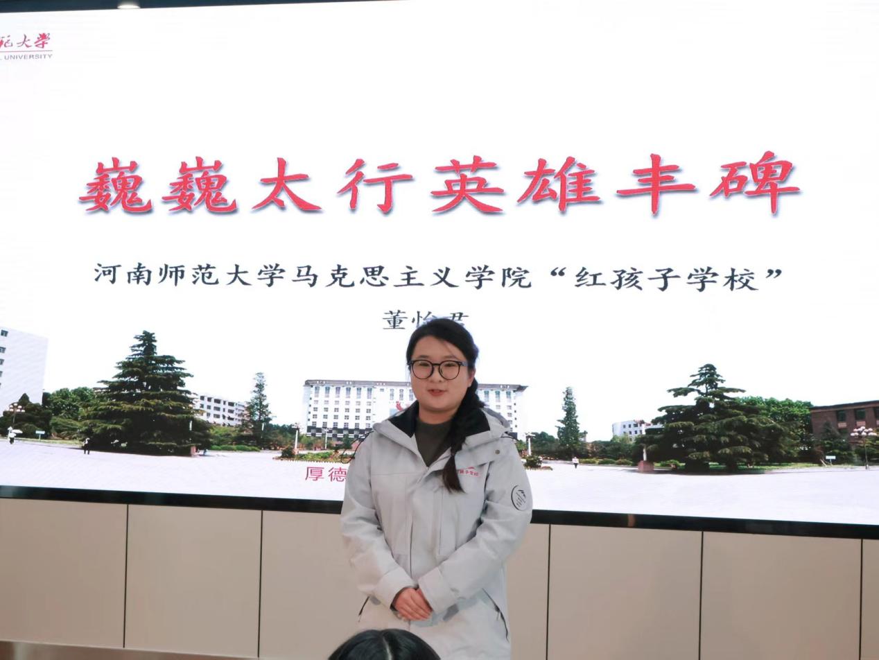 “红孩子学校”巡讲团成员董怡君以《巍巍太行,英雄丰碑(红旗渠精神)》为题,讲述林县人民开凿红旗渠的壮阔历程,诠释了“自力更生、艰苦创业、团结协作、无私奉献”的红旗渠精神;张靖敏围绕《永不褪色的雷锋精神》,结合新时代案例解读雷锋精神的时代内涵,彰显其跨越时空的生命力;马沂聪以《铁血将军董振堂》再现了革命先烈浴血奋战的事迹,传递了共产党人忠诚担当的信仰。