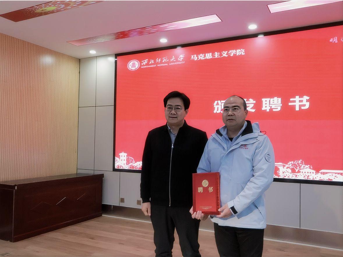史小宁为闫立超副教授颁发了“小红马”大学生理论宣讲团指导教师聘书。