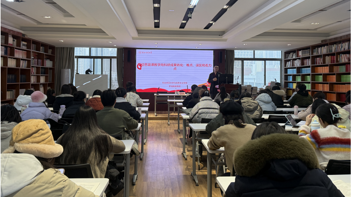 罗湘衡分析了思政课教学向科研成果转化困难的原因,论述了转化的破解之道,提出了思政课教学向科研成果转化的着力点,为师生开展了指导。