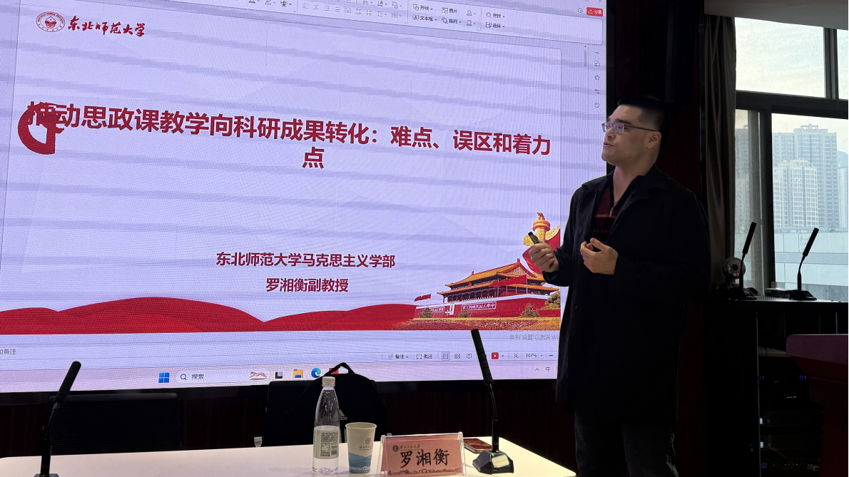 12月4日,应学院邀请,东北师范大学马克思主义学部副教授罗湘衡,为必赢官网师生作了题为《推动思政课教学向科研成果转化:难点、误区和着力点》的学术讲座。副院长周方及2024、2025级博士、硕士研究生参加,青年教师于建贵主持。